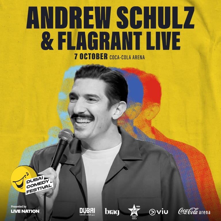 – Packing even more hilarity into this year’s Dubai Comedy Festival, Andrew Schulz brings his fearless comedy and the hit Flagrant Podcast to the Coca-Cola Arena on 7th October. Known for its high-energy banter and unpredictability, Flagrant has become the go-to podcast for unfiltered humour, brought to life by comedic legends and co-hosts Akaash Singh, Mark Gagnon, and AlexxMedia. Gracing the Coca-Cola Arena stage for one unmissable show, guests can expect a night of laugh-out-loud stand-up, special guests, and boundary-bending comedy, all wrapped up into a live podcast taping. This show is presented by Live Nation Middle East Andrew Schulz & Flagrant Live at Coca-Cola Arena, Dubai, United Arab Emirates events Dubai Comedy Festival Coca-Cola Arena Andrew Schulz