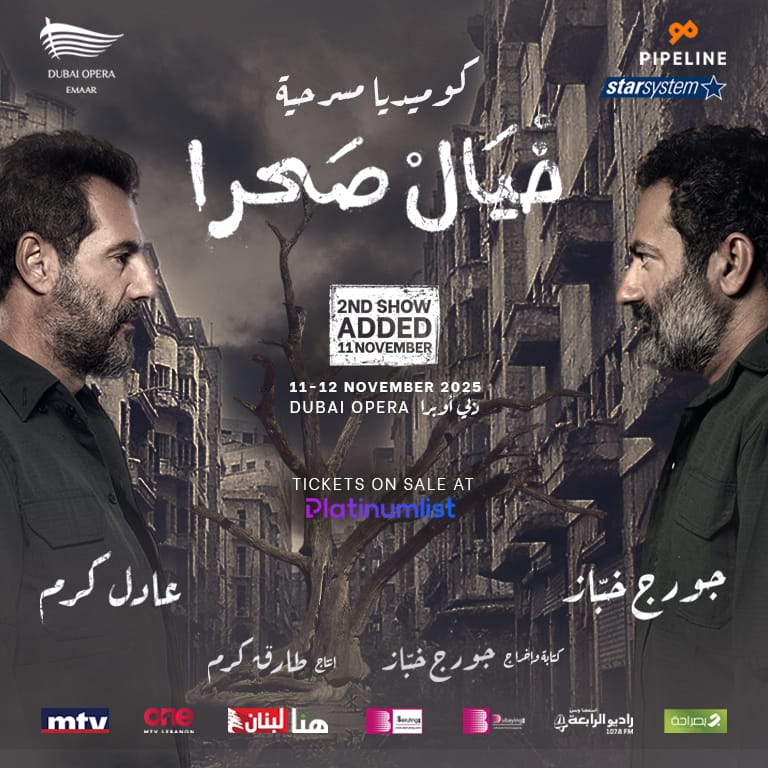 – Lebanese theatre has come back to life in all its forms, and for the first time, two of Lebanon’s biggest names—Georges Khabbaz and Adel Karam—share the stage in “Khyel Sahra,” a social, theatrical production blending drama and comedy, nostalgia and historical commentary. The title is derived from the Lebanese slang “Khyel Sahra,” which refers to someone disregarded or marginalized. Over 80 minutes, Khabbaz and Karam embody two enemy snipers during a ceasefire during the war in 1976. Though fierce opponents in wartime, they become close friends during truces—sharing coffee, stories, memories, and the burdens of life. The performance captures both the absurdity and the humanity of war. Set in the 1970s during the early years of the Lebanese Civil War, the play mirrors reality through the evolving bond of its two main characters. It opens with radio news bulletins announcing a two-day ceasefire. Life resumes cautiously, and the two men meet near the frontline. Their dialogue revives bittersweet memories of a beautiful yet bloodstained past. The collaboration between Georges Khabbaz and Adel Karam marks a milestone in Lebanese theatre. The play touches on national belonging, sacrifice, and emotional struggle without delving into divisive political topics. Both characters evolve from wartime snipers to modern-day security guards, highlighting the psychological residue of conflict. This event is presented by Star System and Pipeline. Khyel Sahra at Dubai Opera at Dubai Opera, Sheikh Mohammed bin Rashid Boulevard, Dubai, United Arab Emirates events Shows and Theatrical Plays Dubai Opera