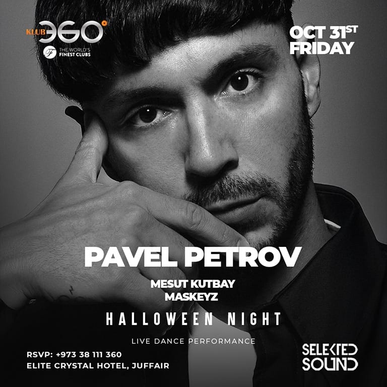 3rd Prize: $100 Bahrain! Halloween just got serious. SelektedBahrain x Klub360 proudly presents: Pavel Petrov – one of the most exciting DJs and producers globally, performing live in Bahrain this Halloween night!  From Europe to South America, Asia to the Middle East, he has played massive stages at ADE, Sonus Festival, Ultra Europe, EXE, and top clubs across Berlin, Amsterdam, Ibiza, and Istanbul. EXE Audio Label Boss’s sound has moved thousands — now it’s your turn.  Get ready for a high-energy Halloween party with non-stop music, a packed dancefloor, and pure vibes. Pavel Petrov at Klub360 at Klub360, Juffair events Nightlife Klub360 Pavel Petrov
