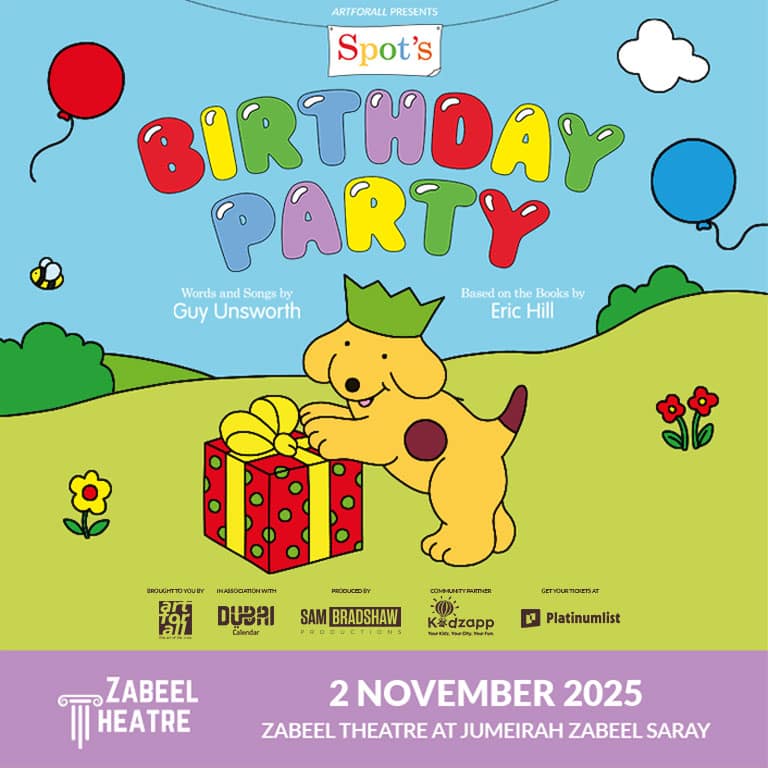 Spot’s Birthday Party at Zabeel Theatre in Dubai Back by popular demand, everyone’s favorite puppy returns to Dubai for a delightful family adventure! This time, Spot is throwing a very special birthday party—and you’re invited to join the fun. Expect party hats, music, dancing, and plenty of interactive games that will have little ones giggling and grown-ups smiling. Alongside Spot, kids can meet Steve the Monkey, Tom the Crocodile, and Helen the Hippo, all coming together to celebrate in style. Inspired by Eric Hill’s much-loved classic Happy Birthday Spot, this brand-new stage adaptation brings the lovable pup and his friends to life in a colorful, engaging, and accessible show. Perfect as an introduction to theatre, this heart-warming experience promises joy, laughter, and unforgettable memories for young audiences and their families. Spot’s Birthday Party at Zabeel Theatre in Dubai at Zabeel Theatre, Jumeirah Zabeel Saray Hotel, Dubai, United Arab Emirates events Shows and Theatrical Plays Zabeel Theatre – Jumeirah Zabeel Saray